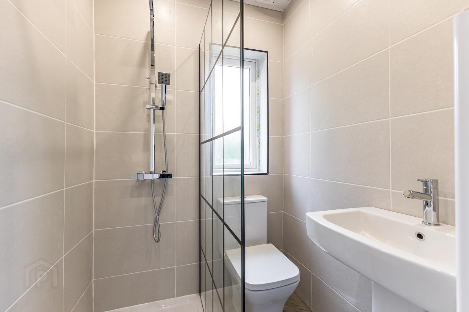 Shower room - Luxury suite including shower cubicle, low flush WC, wash hand basin and tiled walls.