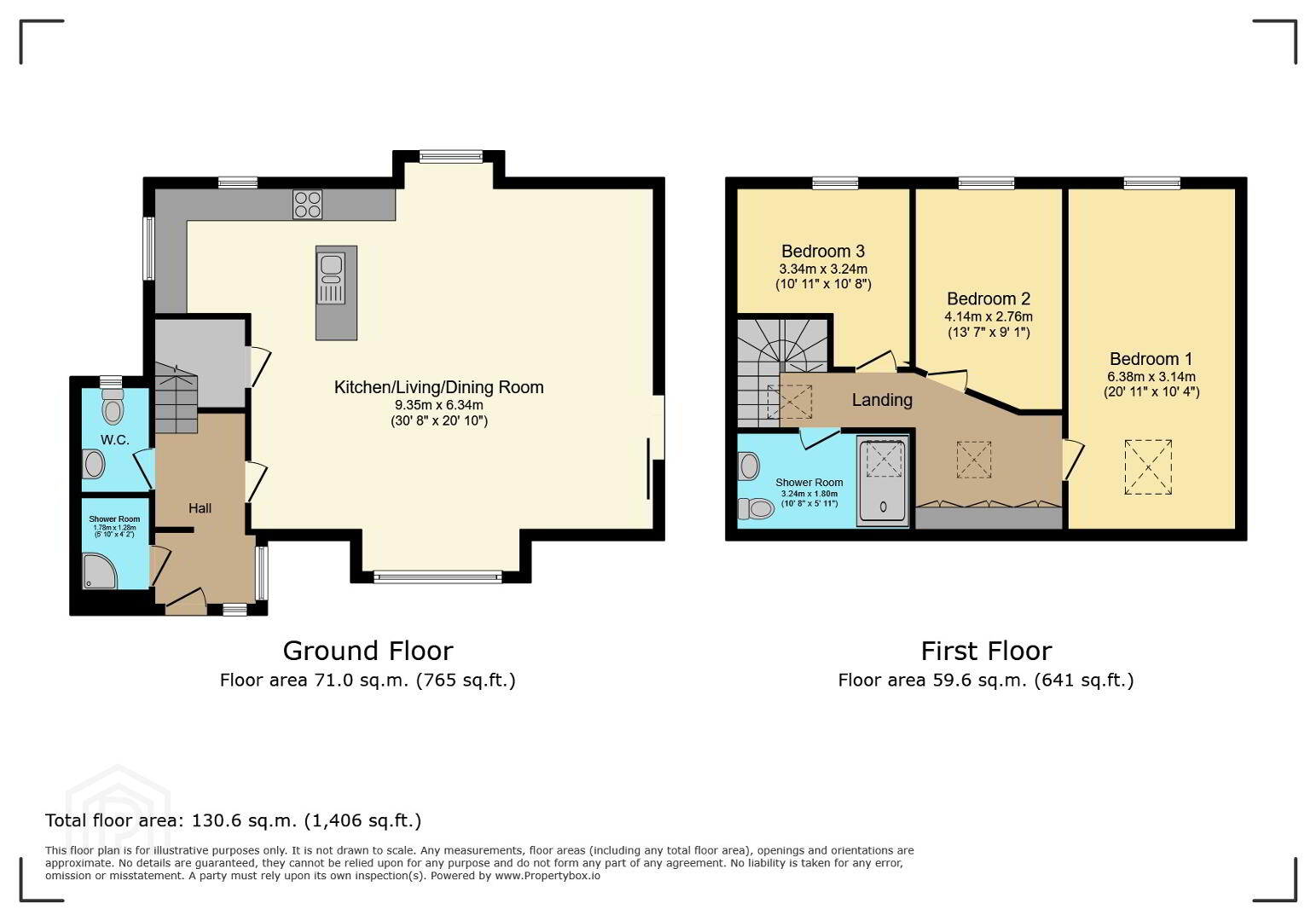 Shower Room: (10'8 x 5'11) Luxury shower room, double shower enclosure, WC and wash hand basin vanity unit, tiled flooring and walls.