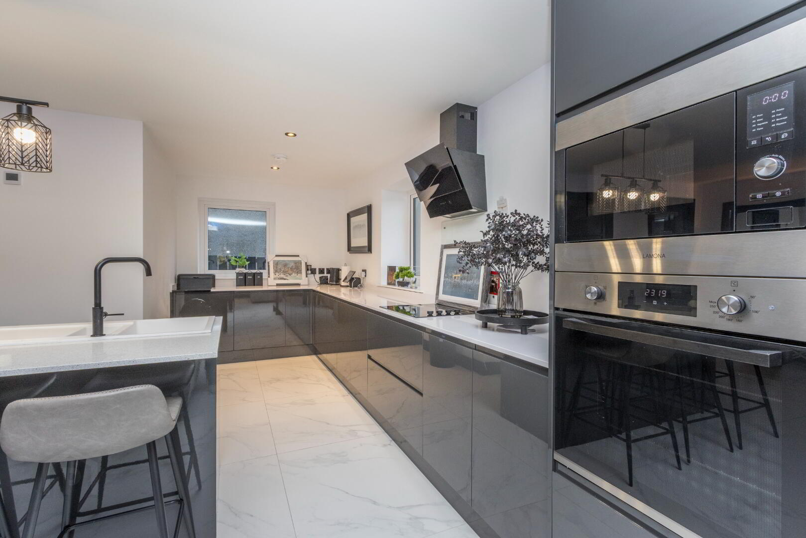 Modern fitted kitchen with many integrated appliances